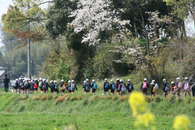 体育館で1年生をむかえる会がありました。6年生に手を引かれて、1年生がアーチをくぐって入場してきました。そのあと、各学年から歓迎の言葉や出し物がありました。歌やダンス、おんぶリレーや貨物列車のゲームなど、1年生に楽しんでもらえるように工夫された出し物です。次に、日岡山公園までの遠足です。1年生は6年生のおにいさんおねえさんに手を引かれ歩いて行きました。あったかくて、好天に恵まれた1日でした。楽しくお弁当を食べて、たくさん遊ぶことができました。きっと疲れていると思いますので、よく休んで疲れをとってくださいね。